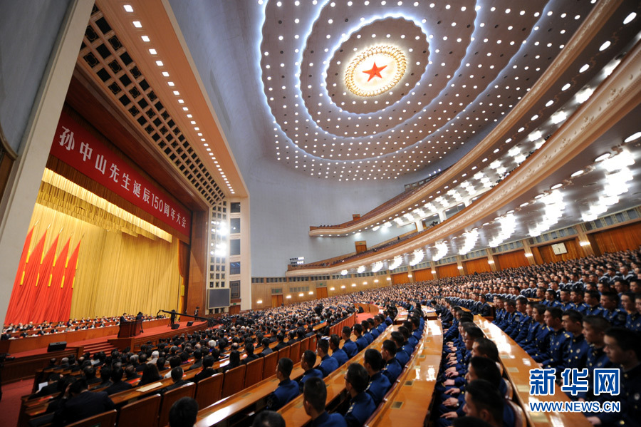 11月11日,紀(jì)念孫中山先生誕辰150周年大會(huì)在人民大會(huì)堂舉行。圖為大會(huì)現(xiàn)場(chǎng)。新華網(wǎng) 陳競(jìng)超 攝