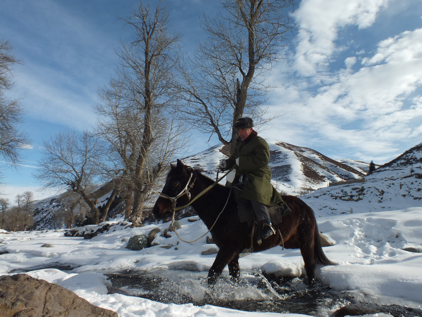 吉布庫河是進出山的必經(jīng)之路,河面上大部分已經(jīng)結(jié)冰。作為村里的唯一醫(yī)生,夏麥依在這條路上已經(jīng)走了36年。