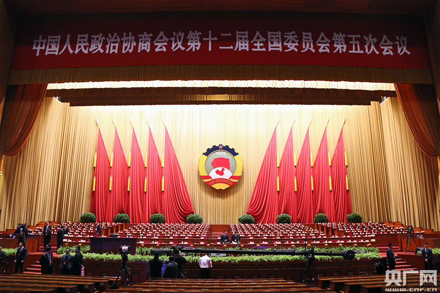 全國(guó)政協(xié)十二屆五次會(huì)議于3月3日下午3時(shí)在北京人民大會(huì)堂開(kāi)幕。全國(guó)政協(xié)委員將聽(tīng)取和審議政協(xié)全國(guó)委員會(huì)常務(wù)委員會(huì)工作報(bào)告和政協(xié)全國(guó)委員會(huì)常務(wù)委員會(huì)關(guān)于政協(xié)十二屆四次會(huì)議以來(lái)提案工作情況的報(bào)告。央廣網(wǎng)記者 吳海波攝