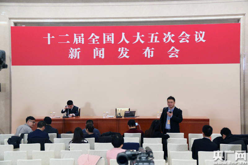 十二屆全國(guó)人大五次會(huì)議定于3月4日上午11時(shí)在人民大會(huì)堂新聞發(fā)布廳舉行新聞發(fā)布會(huì),由大會(huì)發(fā)言人就大會(huì)議程和人大工作相關(guān)的問題回答中外記者的提問。央廣網(wǎng)記者 吳海波攝