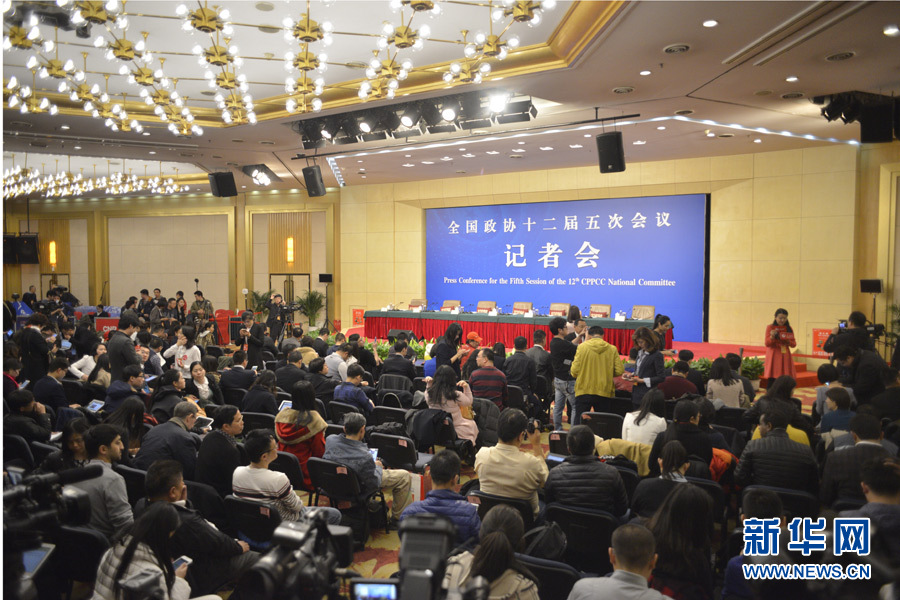 3月7日,全國政協(xié)十二屆五次會議舉行記者會,5位全國政協(xié)委員劉長樂、馮驥才、蘇士澍 、成龍、海霞將就弘揚(yáng)中華優(yōu)秀傳統(tǒng)文化、培育和踐行社會主義核心價值觀、繁榮發(fā)展社會主義文藝、大力發(fā)展社會主義先進(jìn)文化、 推動中外人文交流等問題回答記者提問。圖為記者會現(xiàn)場。 新華網(wǎng)/中國政府網(wǎng) 孫韜 攝