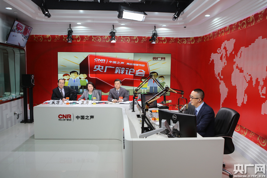 縱論民生AB面,激變新聞?wù)捶。中央人民廣播電臺中國之聲2017年全新打造了兩會特別節(jié)目《央廣辯論會》。今晚的辯題是:將霧霾列入氣象災(zāi)害,您同意嗎? 郁雨鋮 攝