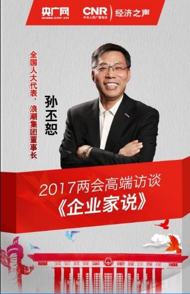 央廣網(wǎng)北京3月3日消息 今日13:00-14:00,中央人民廣播電臺(tái)經(jīng)濟(jì)之聲2017兩會(huì)高端訪談《企業(yè)家說》專訪全國人大代表、浪潮集團(tuán)董事長孫丕恕。