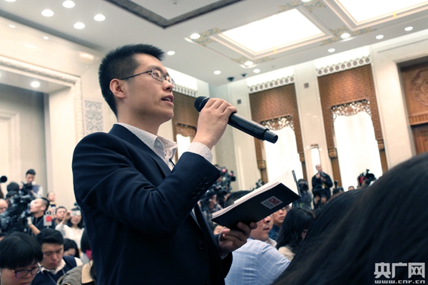中央人民廣播電臺、央廣網(wǎng)、央廣新聞客戶端記者劉會民現(xiàn)場提問。 攝影 吳海波