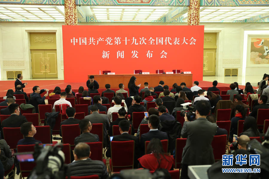 2017年10月17日下午,中國共產(chǎn)黨第十九次全國代表大會新聞發(fā)言人在人民大會堂三樓金色大廳舉行新聞發(fā)布會,并回答中外記者提問。圖為新聞發(fā)布會現(xiàn)場。新華網(wǎng) 翟子赫 攝