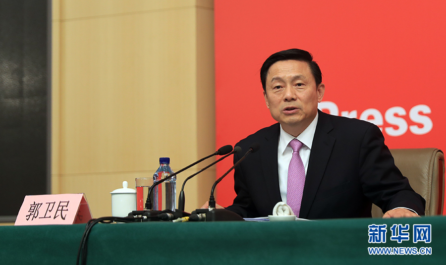 10月19日,十九大新聞中心舉行記者會,邀請中紀(jì)委、中組部負(fù)責(zé)人介紹黨的建設(shè)和全面從嚴(yán)治黨相關(guān)情況。圖為大會新聞發(fā)言人、國務(wù)院新聞辦公室副主任郭衛(wèi)民向與會記者介紹情況。新華網(wǎng) 郝廣鵬攝