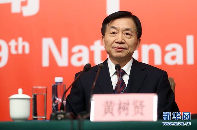 10月22日,十九大新聞中心舉辦記者招待會,邀請教育部、民政部、人力資源社會保障部、住房城鄉(xiāng)建設(shè)部、國家衛(wèi)生計(jì)生委相關(guān)負(fù)責(zé)人介紹滿足人民新期待,保障改善民生有關(guān)情況,并回答記者提問。圖為民政部黨組書記、部長黃樹賢。新華網(wǎng) 郝廣鵬攝