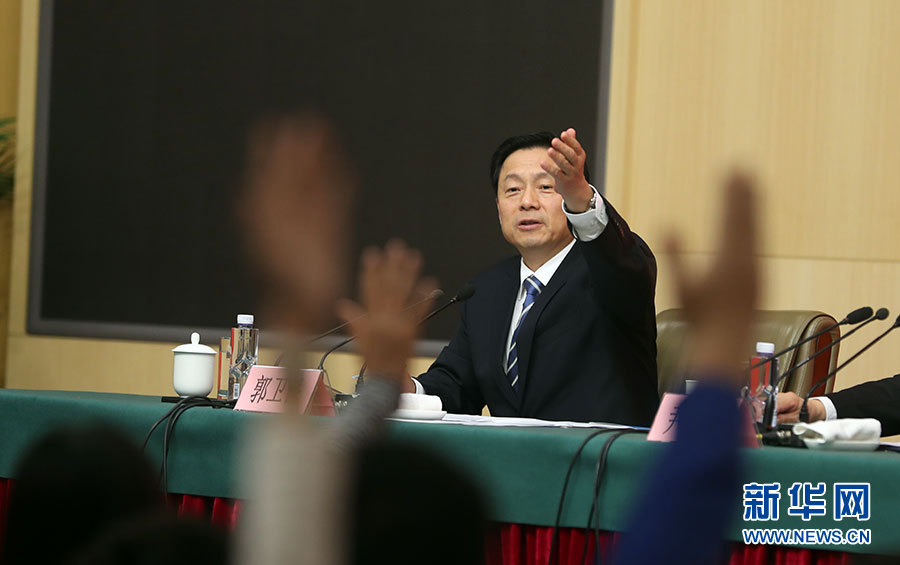 10月22日,十九大新聞中心舉辦記者招待會(huì),邀請(qǐng)教育部黨組書(shū)記、部長(zhǎng)陳寶生,民政部黨組書(shū)記、部長(zhǎng)黃樹(shù)賢,人力資源社會(huì)保障部黨組書(shū)記、部長(zhǎng)尹蔚民,住房城鄉(xiāng)建設(shè)部黨組書(shū)記、部長(zhǎng)王蒙徽,國(guó)家衛(wèi)生計(jì)生委黨組書(shū)記、主任李斌介紹滿足人民新期待,保障改善民生有關(guān)情況,并回答記者提問(wèn)。圖為主持人郭衛(wèi)民。新華網(wǎng) 郝廣鵬攝