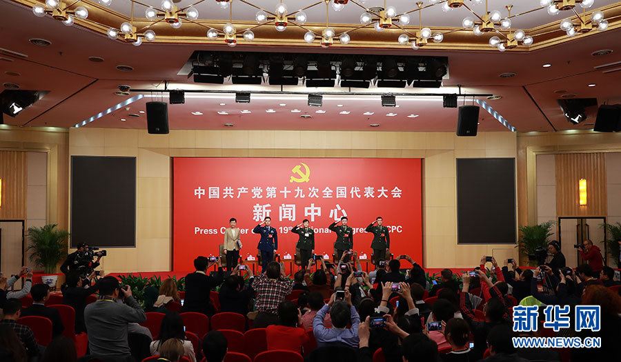 10月22日,十九大新聞中心在梅地亞中心二層新聞發(fā)布廳舉辦集體采訪活動(dòng),主題為“中國(guó)特色強(qiáng)軍之路邁出堅(jiān)定步伐”。圖為集體采訪活動(dòng)現(xiàn)場(chǎng)。新華網(wǎng) 郝廣鵬攝