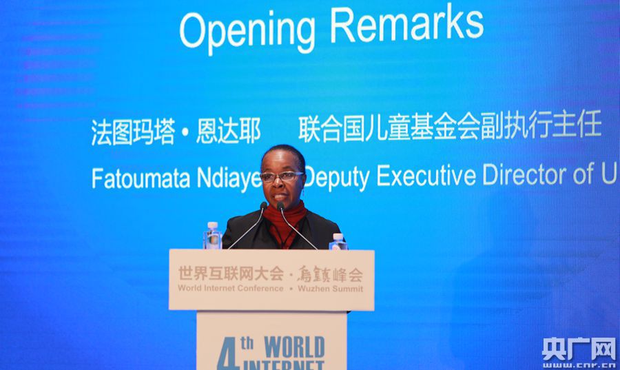 央廣網(wǎng)烏鎮(zhèn)12月4日消息(記者 王永康)今日上午九點(diǎn),在烏鎮(zhèn)互聯(lián)網(wǎng)國(guó)際會(huì)展中心雨讀廳進(jìn)行“守護(hù)未來:未成年人網(wǎng)絡(luò)保護(hù)論壇”。該論壇圍繞“未成年人網(wǎng)絡(luò)保護(hù)”,邀請(qǐng)中外政府官員、國(guó)際組織和青年組織代表、知名學(xué)者以及青少年代表進(jìn)行研討。圖為聯(lián)合國(guó)兒童基金會(huì)副執(zhí)行主任法圖瑪塔·恩達(dá)耶致辭。