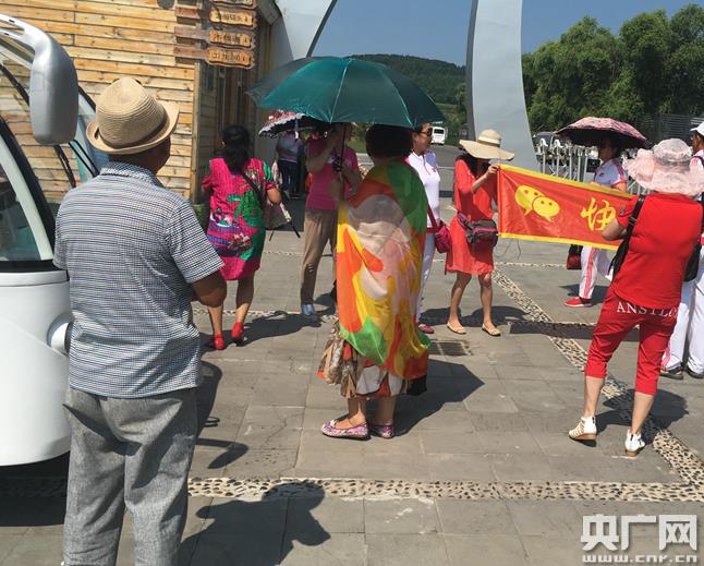 吉仁龍(畫(huà)左)在等待游客拍照上電瓶車(chē)