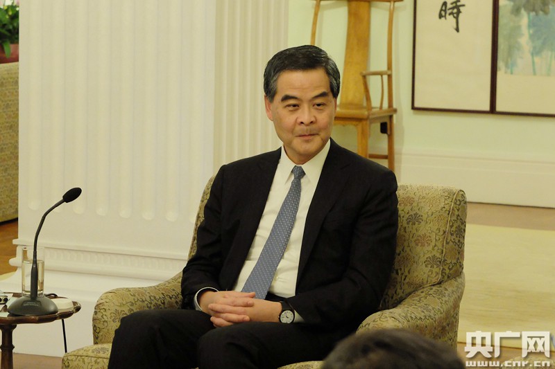 香港特別行政區(qū)行政長官梁振英接受記者采訪