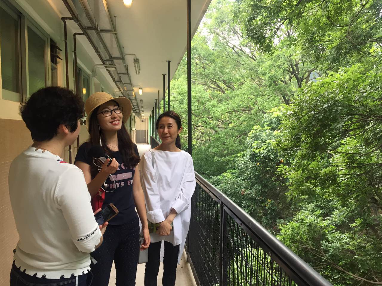 記者朱紅娜在深井光屋采訪租戶“林太太”(左)
