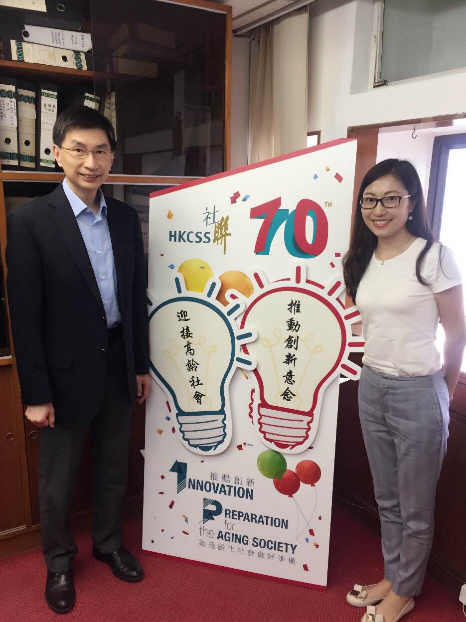 記者朱紅娜采訪香港社會服務(wù)聯(lián)會行政總裁蔡海偉