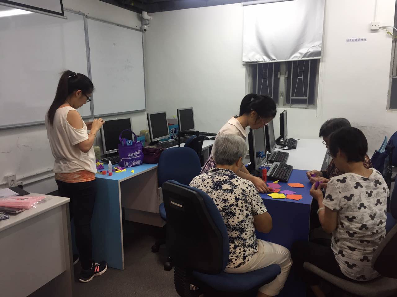 深水埗社區(qū)飯?zhí)茫x工和來就餐的婆婆為母親節(jié)制作花朵