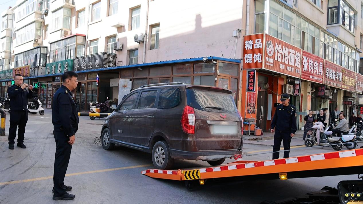 內(nèi)蒙古烏海市海勃灣區(qū),隨著城市管理綜合執(zhí)法局執(zhí)法人員的現(xiàn)場(chǎng)指揮,一輛輛違規(guī)停放的車輛被有序勸離或依法拖移。