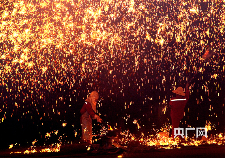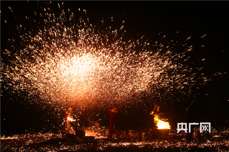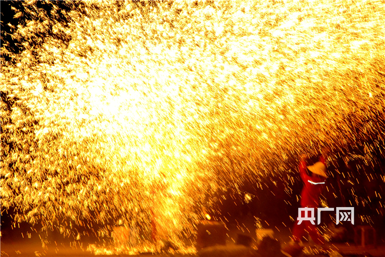 傳統(tǒng)非遺“打鐵花”(央廣網(wǎng)發(fā) 呂昊俊 攝)
