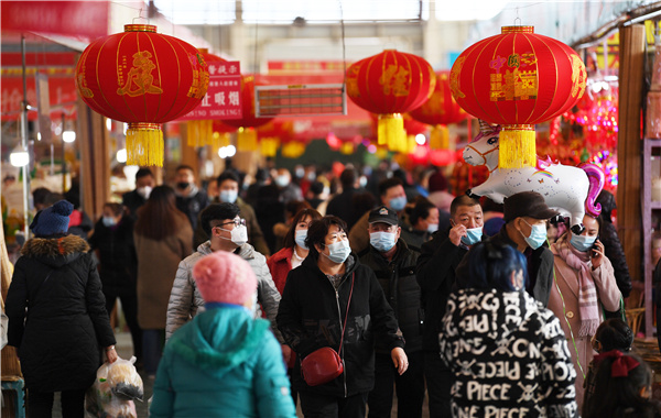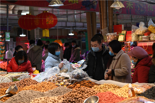 2月7日,呼和浩特市民在保全莊農(nóng)貿(mào)市場(chǎng)購(gòu)買年貨。(央廣網(wǎng)發(fā) 孟和朝魯攝)