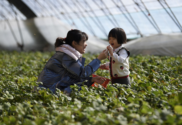 2月14日,呼和浩特市民在內(nèi)蒙古科豐牧蕊鮮花基地內(nèi)采摘。春節(jié)假期,位于賽罕區(qū)的內(nèi)蒙古科豐牧蕊鮮花基地內(nèi)春意盎然,百合、郁金香等鮮花競相開放,市民手拿剪刀采摘鮮花,孩子手提果籃高興地采摘草莓,享受田園樂趣。(央廣網(wǎng)發(fā) 孟和朝魯 攝)