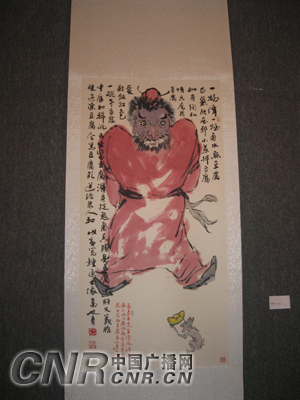 這幅畫作是記者在參觀畫展是覺得很有意思的一幅。整個畫面是由鐘馗和一個拿著金元寶行賄的小鬼組成,上面的題跋更是將高延青為官做人的準則表現(xiàn)得淋漓盡致。