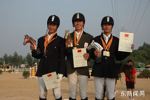 為期三天的2006年“華泰證券杯”全國(guó)馬術(shù)(三項(xiàng)賽)精英賽日前在南京國(guó)際賽馬場(chǎng)落幕。廣東、上海、內(nèi)蒙古代表團(tuán)分獲三項(xiàng)精英賽團(tuán)體前三名,個(gè)人比賽冠軍則被內(nèi)蒙古選手張睿奪得,上海選手紅權(quán)和廣東選手黃偉東分獲二三名。