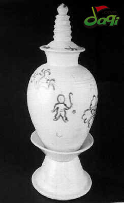 繪有“曲棍球圖”的唐代青花塔形罐