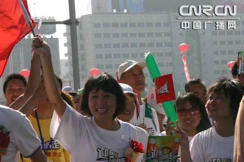中廣網(wǎng)呼和浩特8月2日消息(記者鄭穎、劉俊霞 實(shí)習(xí)記者董瑩瑩)8月2日上午8點(diǎn),“迎奧運(yùn) 中國(guó)向前走”伊利萬人健步走活動(dòng)在呼和浩特市新華廣場(chǎng)正式啟動(dòng)。在奧運(yùn)冠軍王軍霞的帶領(lǐng)下,一個(gè)由萬人組成的“馬拉松”隊(duì)伍浩浩蕩蕩的出發(fā)了。他們將穿越新華廣場(chǎng)一路健走至呼和浩特伊利廣場(chǎng),全程約2公里。