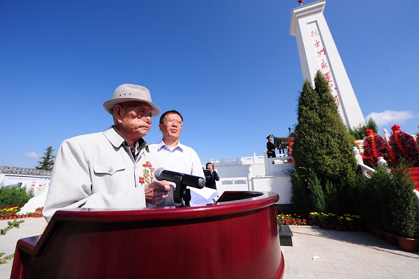 今年91歲的王榮華老戰(zhàn)士,胸前掛滿軍功章,在家人的攙扶下,步履蹣跚地走到發(fā)言席前,老人說:“沒有無數(shù)革命先烈的拋頭顱、灑熱血,就不會(huì)有今天幸福生活,F(xiàn)在舉行的紀(jì)念活動(dòng),就是要緬懷在抗日戰(zhàn)爭(zhēng)中英勇犧牲的革命先烈,讓我們永遠(yuǎn)懷念他們、不要忘記他們!笨吹酱笄嗌礁锩蠀^(qū)發(fā)生的巨大變化,老人非常激動(dòng),他告誡今天的年輕人,幸福的生活來之不易,大家要牢記歷史,珍愛和平。