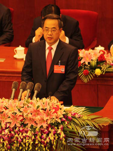 自治區(qū)黨委書記胡春華代表中共內(nèi)蒙古第八屆委員會向大會作題為《堅持科學發(fā)展 推進富民強區(qū) 努力把內(nèi)蒙古建設(shè)得更加繁榮富裕和諧美好》的報告。報告共分為七個部分:一、過去五年的經(jīng)濟社會發(fā)展;二、堅持科學發(fā)展、推進富民強區(qū)的總體要求;三、全面提高經(jīng)濟綜合發(fā)展水平;四、切實保障和改善民生;五、努力實現(xiàn)生態(tài)保護與發(fā)展雙贏;六、扎實推進和諧內(nèi)蒙古建設(shè);七、不斷加強和改進黨的建設(shè)。(內(nèi)蒙古新聞網(wǎng) 劉俊霞)