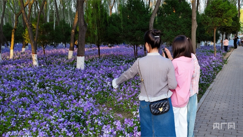 漫步在花海間的步道上,濃郁的花香撲面而來,目之所及皆是浪漫。市民們紛紛走出家門,或駐足拍照定格春日,或穿行花間享受自然,在鳥語花香中沉浸式感受塞上春日的愜意與美好。盛放的二月蘭不僅為城市增添了一抹靈動(dòng)的色彩,更成為市民春日休閑、親近自然的熱門打卡地,讓春日銀川充滿了生機(jī)與活力。