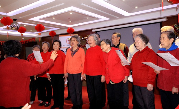 和熹會(huì)老年公寓入住著200多位老人,屬高知、高職、高齡、高需求的“四高”人群,他們平均年齡83歲,大多畢業(yè)于清華、北大,曾經(jīng)都是教授或者研究員,除了基本的生活需求外,他們對(duì)于精神文化生活的需求也很高,平日文化娛樂(lè)活動(dòng)不斷的他們聽(tīng)說(shuō)志愿者們要來(lái)慰問(wèn),早是興奮不已,早早排練好節(jié)目要和志愿者們一起聯(lián)歡,老年公寓里掛起橫幅表達(dá)對(duì)志愿者們的歡迎。來(lái)自北京市經(jīng)濟(jì)技術(shù)開(kāi)發(fā)區(qū)聽(tīng)濤合唱團(tuán)的老年志愿者們,雖然都是退休人員組成,他們平均年齡60歲以上,最大的已經(jīng)80歲,但他們有顆年輕人的心,每個(gè)人都有一顆尊老愛(ài)老敬老的心,能歌善舞,甚至一人多能的他們?yōu)槔先藥?lái)精彩的京劇、評(píng)劇、河北梆子等各地戲曲和器樂(lè)演奏讓老人們連聲較好,《紅梅贊》、《紅湖水浪打浪》等一首首老歌聽(tīng)得老人們好不過(guò)癮,60多歲的團(tuán)長(zhǎng)說(shuō):我們比的不是優(yōu)美的嗓音和唱腔,但我們有一顆永遠(yuǎn)十八歲的心,希望把這種快樂(lè)生活帶給大哥哥大姐姐們。青年魔術(shù)師的逃脫變法術(shù)讓臺(tái)上老人玩得不亦樂(lè)乎,臺(tái)下老人看得目不轉(zhuǎn)睛,大家連連稱(chēng)奇拍手叫絕。在猜謎互動(dòng)環(huán)節(jié)中,老人們思維敏捷、反應(yīng)迅速,題面出了一個(gè)又一個(gè),獎(jiǎng)品領(lǐng)了一波又一波,活動(dòng)高潮一浪高過(guò)一浪。