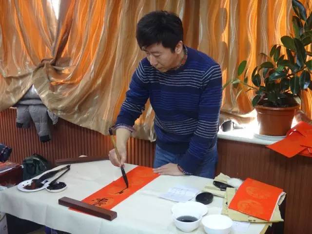 今天專(zhuān)程來(lái)為老人們寫(xiě)春聯(lián)的,那是一位“大咖”。 字清而峻,用筆精而穩(wěn)……這是國(guó)家一級(jí)美術(shù)師、中國(guó)畫(huà)院畫(huà)家韓左斌。韓老師今天很早就來(lái)了,活動(dòng)還沒(méi)開(kāi)始就已經(jīng)寫(xiě)起來(lái)。