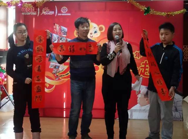 志愿者們把一幅幅飽含真情的春聯(lián)送到老人們手中,許多老人笑得合不攏嘴。