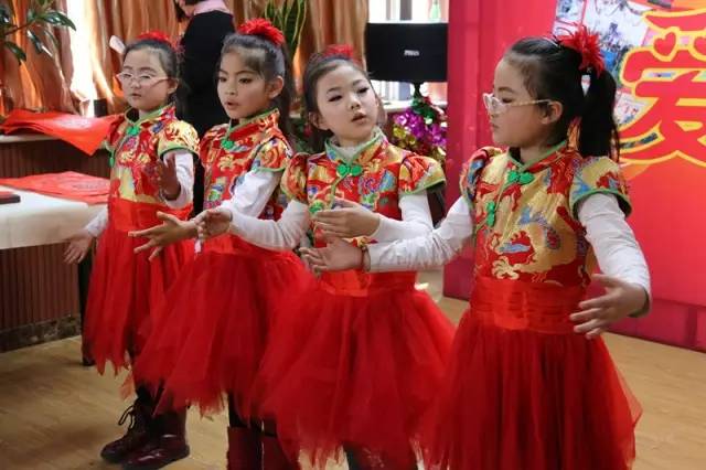 下面這四位身著盛裝的小朋友,給爺爺奶奶演唱了《恭喜恭喜》。別看她們每個(gè)人只有7歲,站在臺(tái)上特別有范兒,老人們都喜歡得不行。