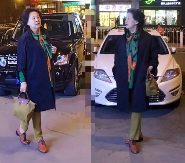 。ò姆圻吪c外套相配,絲巾褲子鞋的顏色相呼應(yīng))