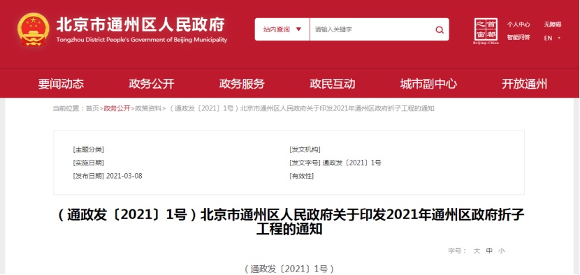(2021年通州區(qū)人民政府折子工程通知,圖源北京市通州區(qū)人民政府,央廣網(wǎng)發(fā))