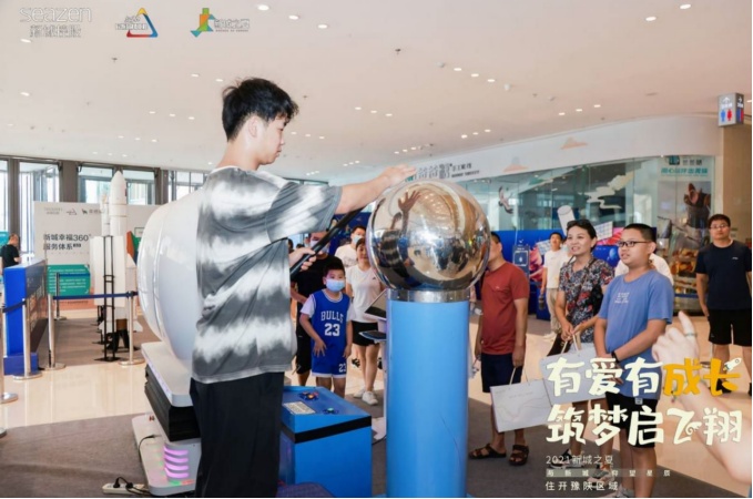 活動現(xiàn)場,新城的工作人員準(zhǔn)備了精彩多元的航空體驗活動和航空知識科普展,以及專門設(shè)有火箭和衛(wèi)星模型、VR蛋殼、靜電儀等各種體驗設(shè)備。專業(yè)老師在現(xiàn)場邀請小朋友們共同打開神奇探索之門,例如:徒手就能讓乒乓球在空中“漂浮”,一層泡泡竟能在手掌上燃起火焰……神奇的科學(xué)實驗讓現(xiàn)場的大小朋友們驚嘆連連。