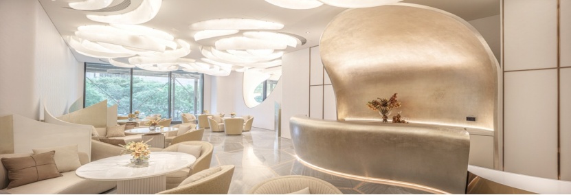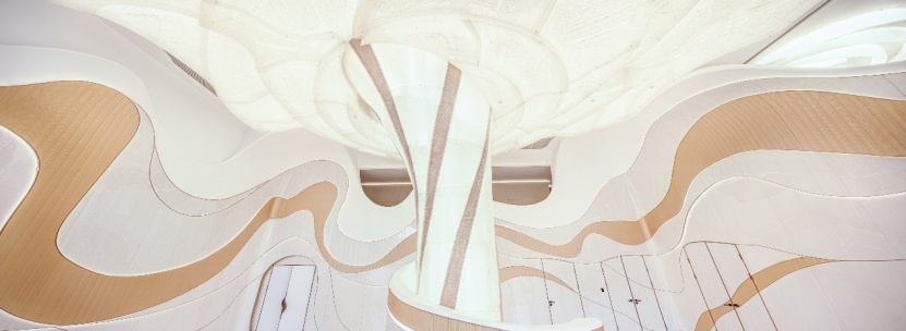 而室內(nèi)空間,通過流暢的曲線造型,以及雅白色的材質(zhì)裝飾,營造一種云海的空間感,亦形成了一種磅礴的藝術(shù)張力。
