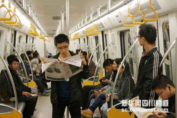 當日,成都地鐵2號線開通試運營。據(jù)介紹,地鐵2號線貫穿成都西北至東南方向,起于西三環(huán)外茶店子客運站,止于繞城高速內成都行政學院站,沿途設20個車站,線路全長約22公里。在天府廣場站,2號線與1號線實現(xiàn)換乘!⌒氯A社發(fā)(趙俊超 攝)