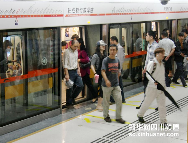 9月16日,乘客在成都地鐵2號線天府廣場站下車。