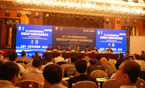 此次高峰論壇的主題是“中國西部紡織產(chǎn)業(yè)轉(zhuǎn)型升級,承接?xùn)|部紡織產(chǎn)業(yè)轉(zhuǎn)移”。轉(zhuǎn)型即發(fā)揮資源優(yōu)化配置功能,引導(dǎo)中國西部紡織企業(yè)從紡棉劣勢,轉(zhuǎn)變?yōu)榧徴忱w、滌綸等其他纖維優(yōu)勢,實現(xiàn)產(chǎn)品、市場高端化,成本優(yōu)勢化;升級即傳統(tǒng)產(chǎn)業(yè)高端發(fā)展是企業(yè)生存之道,促使中國西部紡織企業(yè)裝備升級、產(chǎn)品升級、市場升級;轉(zhuǎn)移即以優(yōu)惠的招商引資政策和原料、能源等資源優(yōu)勢,承接?xùn)|部紡織企業(yè)的轉(zhuǎn)移,形成中國西部紡織產(chǎn)業(yè)集群。