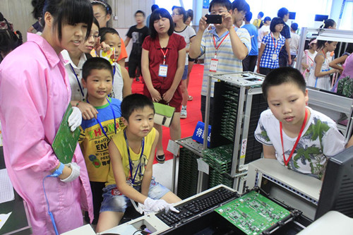 “長虹電視探索之旅”歡迎程度超出預想,不得不增加臨時班次。長虹公司工會主席胥邦君告訴記者,讓員工子女零距離感受現(xiàn)代規(guī)模化工業(yè)生產(chǎn)工廠氛圍,不僅有利于推進員工關系建設,打造以員工滿意為核心理念的夯實企業(yè)文化,也有利于這些長虹小家人們理解父母的工作,增進家庭內部溝通,是一舉多得的好事情。