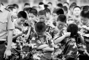 軍訓(xùn)場(chǎng)內(nèi),新生們頂著風(fēng)雨堅(jiān)持,而躲在場(chǎng)外觀察的父母,心都提到了嗓子眼。“第一次住讀,放心不下,所以專門請(qǐng)了假,偷偷在角落里看他!70后家長(zhǎng)王先生告訴記者,開(kāi)學(xué)那天替孩子鋪床、辦手續(xù),回家后還是一直擔(dān)心今天的軍訓(xùn),怕孩子受不了。