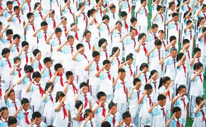 成都七中育才學(xué)校學(xué)道分校的開學(xué)典禮上,一群穿著藍色校服、佩戴紅領(lǐng)巾的學(xué)生特別引人注目。據(jù)該校校長陽波介紹,原來這群學(xué)生還是小學(xué)六年級的學(xué)生,他們是目前國家實施教育改革,大力探索的“五四學(xué)制”(小學(xué)五年、初中四年)的一批優(yōu)秀學(xué)生。據(jù)介紹,小學(xué)五年級畢業(yè)后,這些學(xué)生就升入該校進行一年的小升初銜接教育,明年將直接升入該校的初一年級。