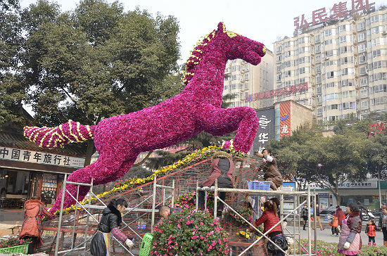 雙流:景觀打造迎新春 節(jié)儉不失年味兒