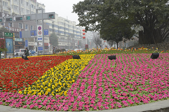 除此以外,東升街道南昌路、紫東閣街、廣場(chǎng)賓館等地,將本著勤儉節(jié)約的原則,在原有的基礎(chǔ)上,新增鮮花,將它們一一扮靚。記者走訪各處觀察到,由郁金香、報(bào)春花、三色堇、杜鵑花等十余類花卉拼排的鮮花方陣賞心悅目。紫色、紅色、黃色……各種顏色的花朵絢爛多彩,將廣都大地裝點(diǎn)得春韻十足。