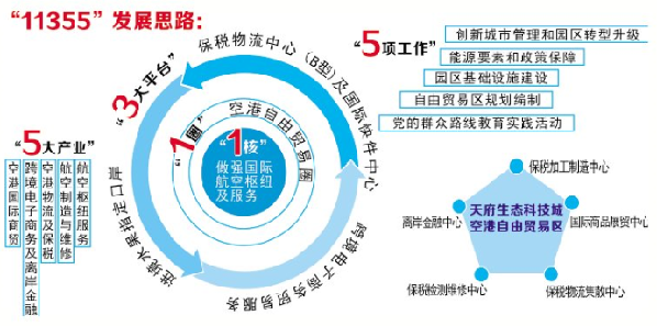 “功能區(qū)現(xiàn)在主要發(fā)展航空樞紐服務(wù)、航空制造與維修、空港物流及保稅、跨境電子商務(wù)及離岸金融、空港國際商貿(mào)五大產(chǎn)業(yè),每一個都是朝陽產(chǎn)業(yè),并且都與自貿(mào)區(qū)建設(shè)緊密相關(guān)。”說起功能區(qū)的各大產(chǎn)業(yè),韓林如數(shù)家珍。