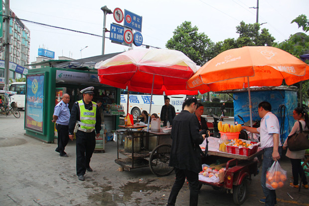 位于邛崍東門的客運中心外,每天人流量較大,加上商販長期聚集在客運中心出入口占道經(jīng)營,一直是城區(qū)秩序管理的難點。市城管局執(zhí)法隊首先從調(diào)查摸底,建立了人員檔案著手,并積極與周邊醫(yī)院等單位協(xié)調(diào),將客運中心旁某醫(yī)院一側(cè)不影響通行的自行車停放區(qū)作為臨時攤區(qū),引導(dǎo)10余個困難商販在該處定點經(jīng)營,有效解決了客運中心出入口亂擺攤的現(xiàn)象,兼顧了困難群眾的生計問題,受到群眾好評。