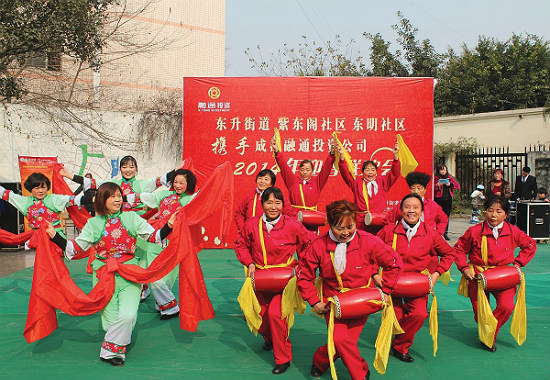 歡欣鼓舞,喜迎新春。在2014新春佳節(jié)即將到來(lái)之際,22日下午,由東升街道紫東閣社區(qū)、東明社區(qū)主辦,成都融通投資公司協(xié)辦的“2014年迎春聯(lián)歡會(huì)”在北壇路雙擁一條街隆重舉行。