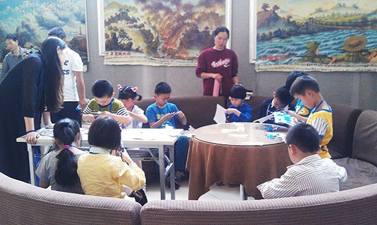 “老師,我做的這個(gè)是阿貍,我最喜歡這個(gè)卡通人物了。”19日下午,雙流縣圖書館大廳內(nèi),40多名兒童聚在一起,興致勃勃地參加紙模手工活動(dòng),三名來自西南民族大學(xué)的志愿者在一旁耐心地指導(dǎo)。
